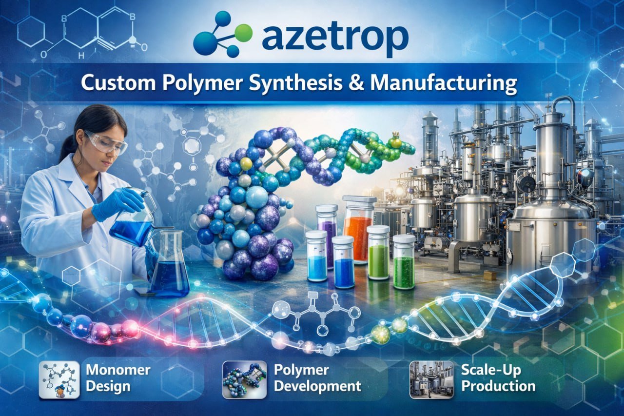 At AZETROP, our core services focus on transforming advanced polymer science into scalable, high-performance solutions. We specialize in custom polymer synthesis, engineered particle development, surface modification, bioconjugation, and process scale-up—delivering materials designed for precision, reliability, and real-world industrial application.